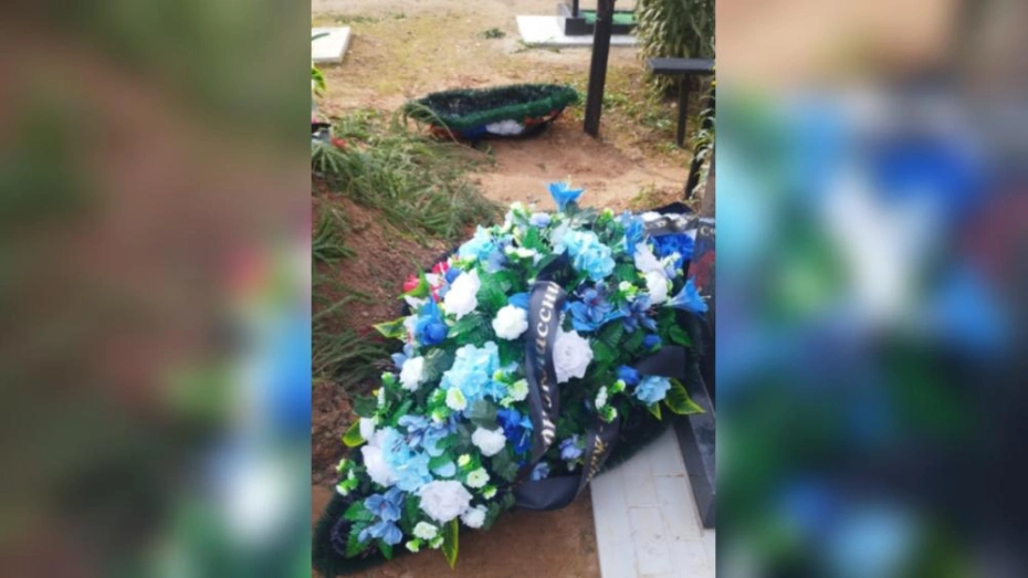 Родственники одного из погибших бойцов обнаружили, что его захоронение было изуродовано: траурные венки разбросаны, флаг России вырван и выброшен, а фотография и лампадка разбиты.