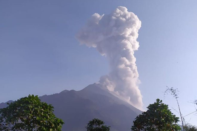 Вулкан Мерапи на индонезийском острове Суматра выбросил столб пепла на высоту 1,2 километра над своей вершиной, что составляет более 3,9 километра от уровня моря.