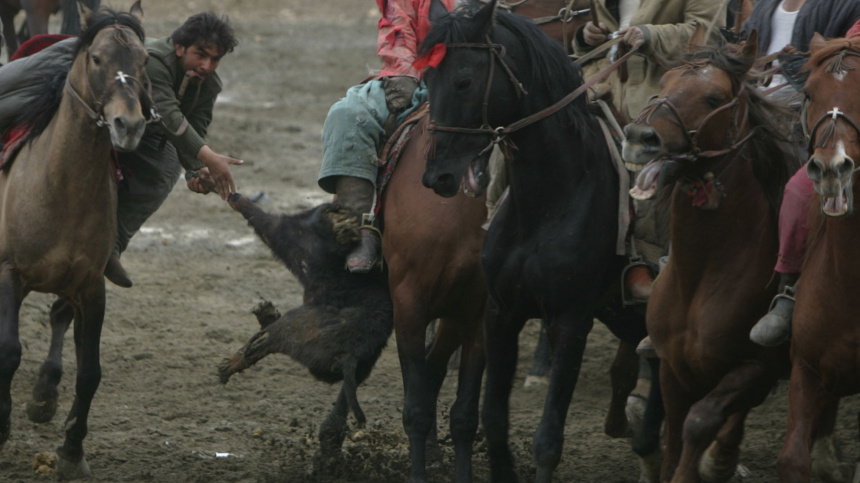 В Раменском районе Московской области сотни иностранцев на лошадях устроили игру с тушей козла, напоминающую центральноазиатское «бузкаши».